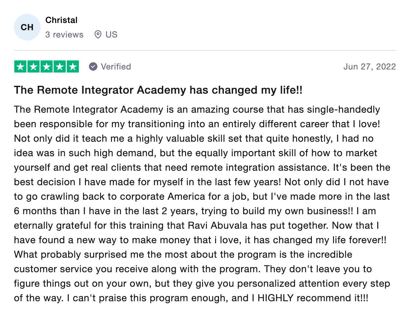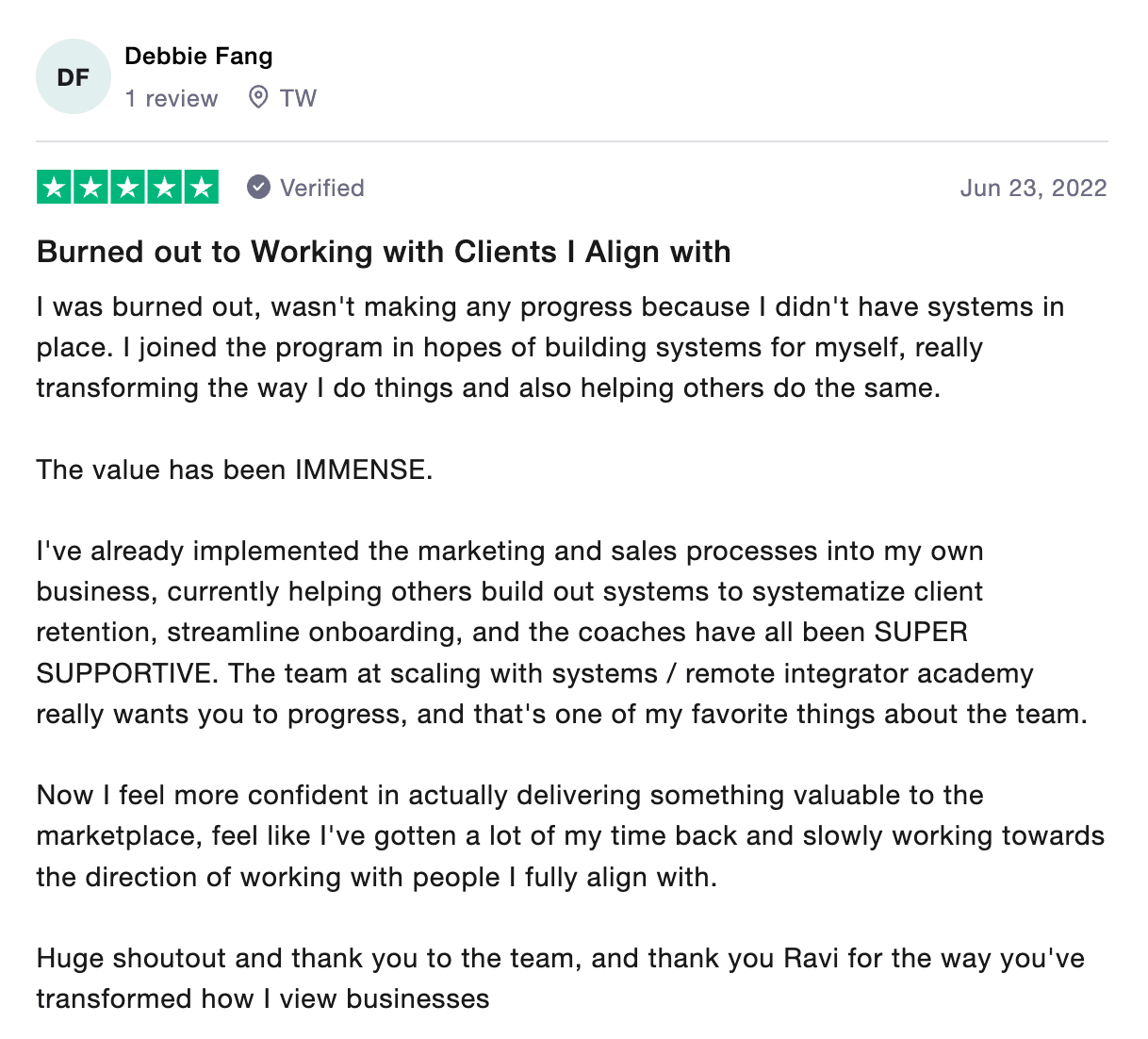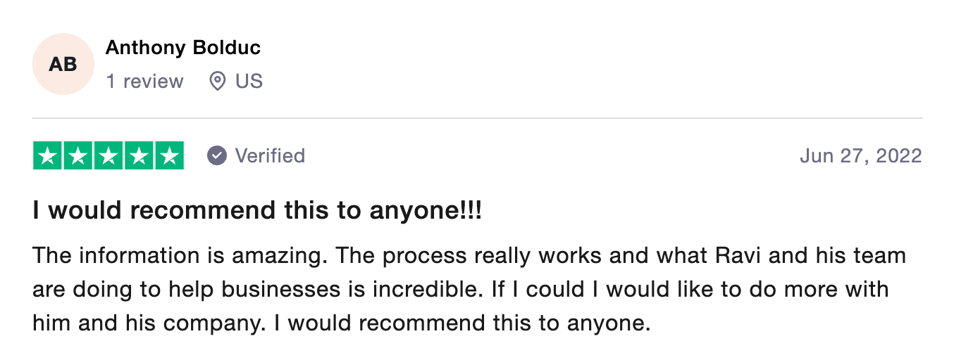 “Ravi helped me work less and make more. I can’t thank him enough. If you feel like you’re working too much in your business and not making enough, work with Ravi.”